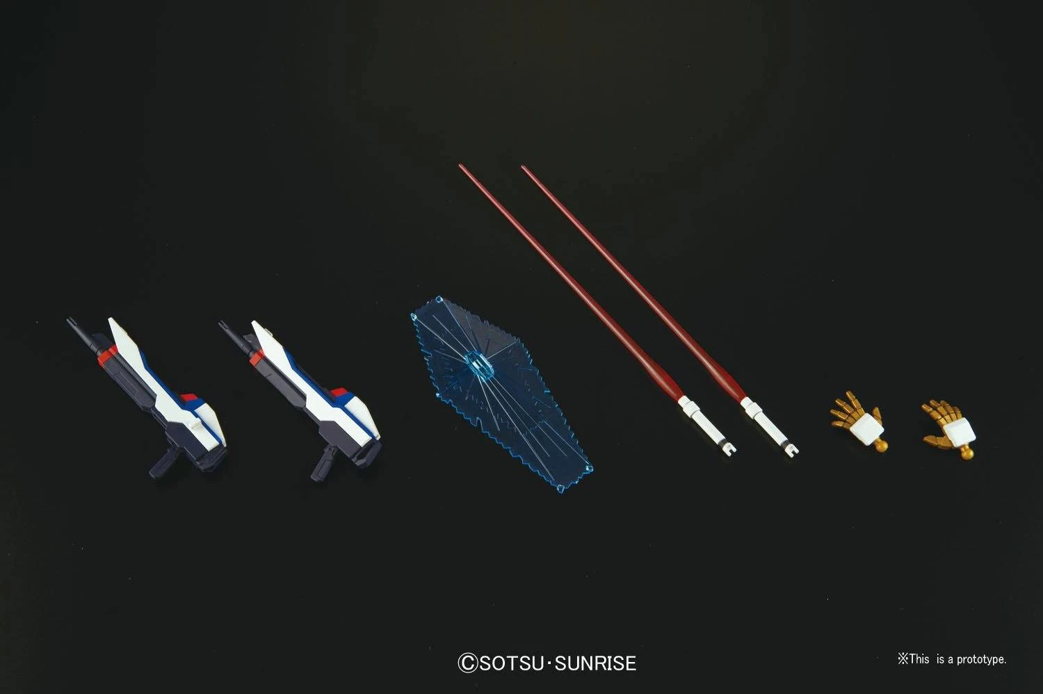 An updated design of the Strike Freedom from “Gundam Seed Destiny” recreated with new proportion and part separation technology. Includes 2 beam rifles that can also combine, hip mounted rail guns that can fold back for storage, beam shield, and 2 beam sabers.Â