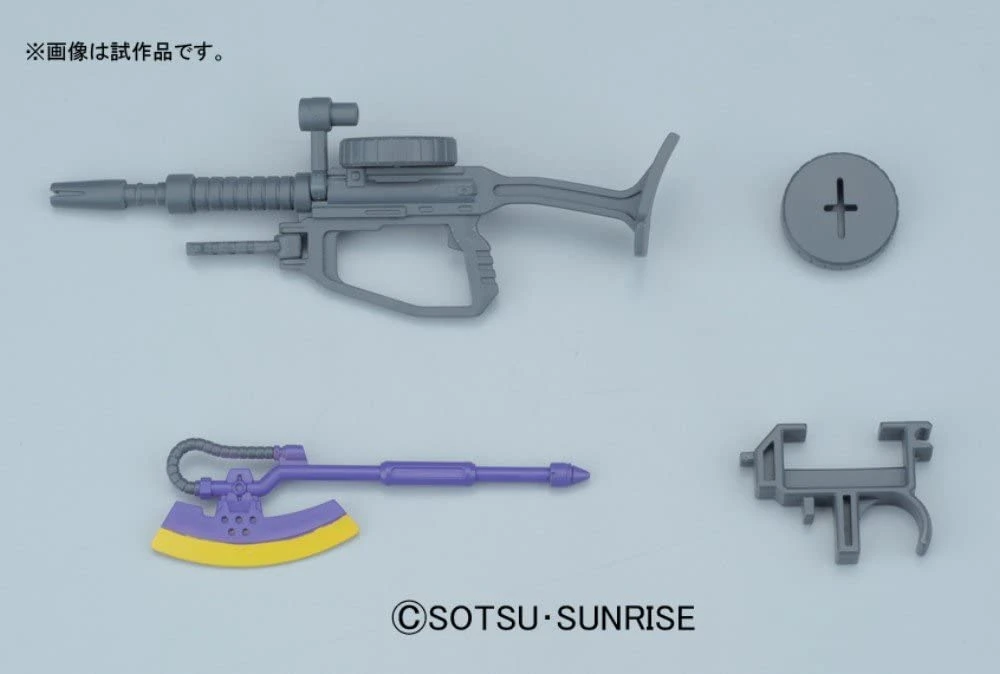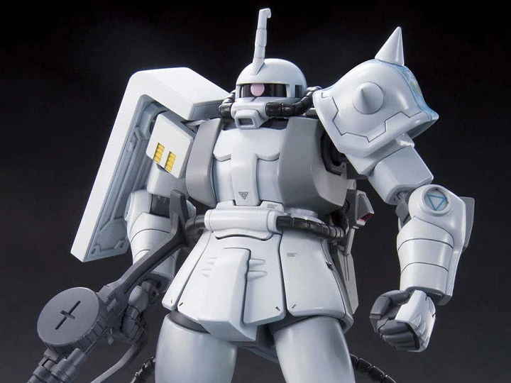 The Zaku II Shin Matsunaga (Custom Type) is a 1/144 scale model kit that becomes a fully articulated figure once complete. Zaku can be armed with a bazooka, machine gun and heat hawk.