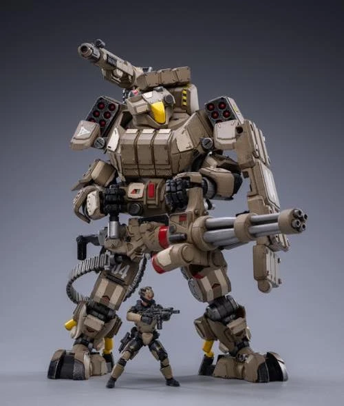 Joy Toy’s military vehicle series continues with the Iron Wrecker 04 Heavy Firepower Mecha and pilot figure! Each 1/25 scale articulated military mech and pilot features intricate details on a small scale and comes with equally-sized weapons and accessories.