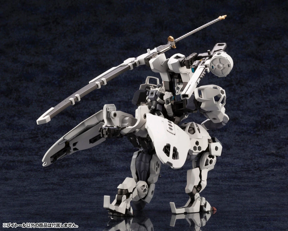 Featuring a cockpit accessible from the back, this humanoid Hexa Gear stands at approximately 8.11 inches tall. This Hexa Gear boasts the widest range of motion in the series so far, allowing the model to hold a large sword in both hands or a rifle like a soldier.