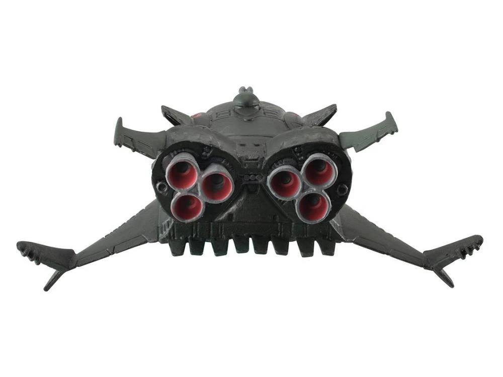 Cima Garahau’s flagship, the Zanzibar-II Class Cruiser Lili Marleen featured in Mobile Suit Gundam 0083: Stardust Memory is here as part of the Cosmo Fleet Collection series, along with a miniature model of Cima Garahau’s Gelgoog-M mobile suit. This set includes a base to display them together.