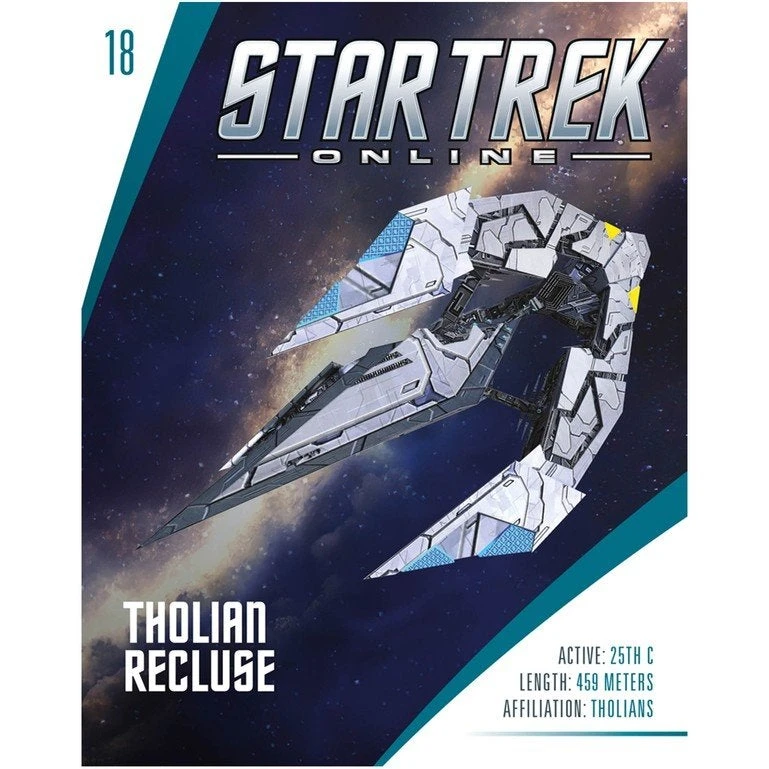 Recluse-class Tholian Carrier comes with a 20-page full-color magazine plus a unique discount code that can be used in-game. The magazine includes a profile of the ship, concept art, details of its design evolution, and game stats.