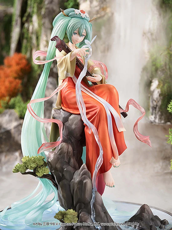 Miku is posed in a relaxed, comfortable position, her long hair appearing to transform into water as it flows down. Special care has been taken to capture the colors of the original illustration with finely detailed paintwork. Add this figure of Hatsune Miku in traditional Chinese style to your collection.